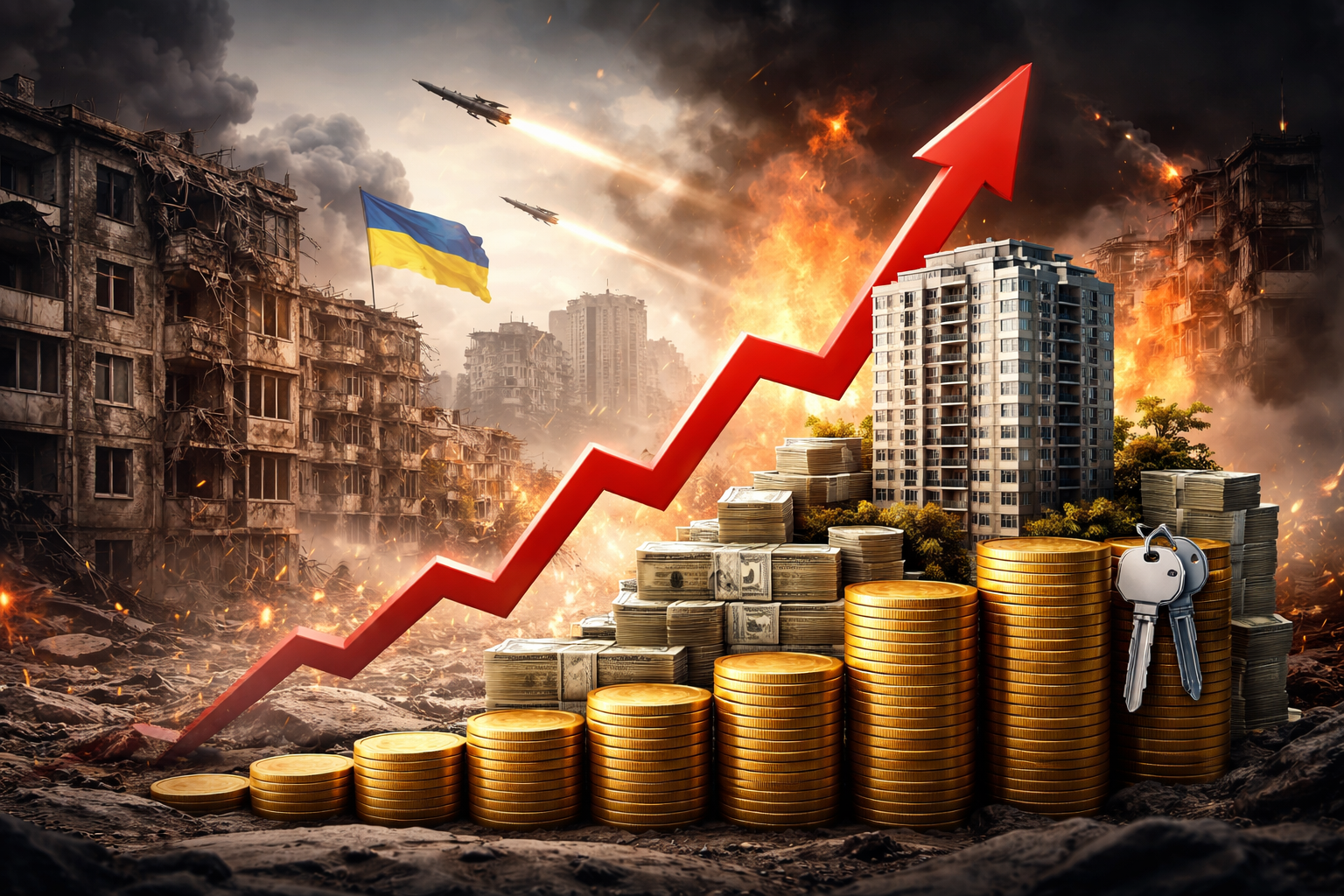 Соғысқа дейін Украинаның барлық аймағындағы үй бағасы салыстырмалы түрде ұқсас еді. Киевте үй бағасы қымбат болды. Украинаның орталық бөлігінде баға ұзақ жылдар бойы бірқалыпты болса, Одесса іспеттес жағажайы бар, теңіз аймағындағы қалаларда үй бағасы маусымға байланысты өзгеріп отырды. Ендігі таңда үйдің бағасын майдан даласынан қашықтық анықтайды. Киевтегі үйдің бағысы ендігі таңда қорғаныс кешендерінен, мемлекеттік ғимараттардан алыс/жақындығына байланысты бағалануда.