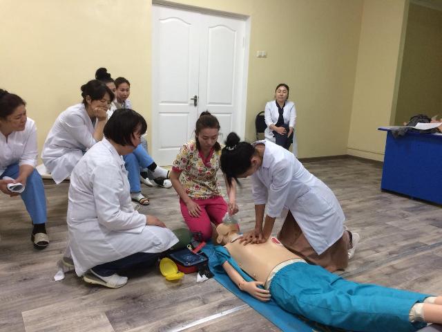 Сәуір айында Шымкент қаласы Шымкент темір жол ауруханасының 70-тен астам мамандары, оның ішінде дәрігерлер мен орта буын медицина қызметкерлері халықаралық стандарттарға сәйкес BLS (базалық реанимациялық шаралар ) және АСLS ( жүректің тоқтауы кезінде және жүрек –қантамыр жүйесінің бұзылыстарында қарқынды терапия ) курсына қатысып білімдерін шыңдады. Семинар-тренинг симуляциялық технологияларды пайдалану арқылы ұйымдастырылды. Оның ерекшелігі, қатысушылардың «науқасты» құтқару мақсатында жасалған әрбір іс-қимылдарының дұрыс не бұрыстығын арнайы манкендер арқылы бағалап, кем-кетік тұстарына қатысты дәрісті тереңдетіп өткізуде. Арнайы медициналық манекендерді пайдалану арқылы жүргізілетін симуляциялық курстардың маңыздылығы орасан зор, тренгинг басрысында қатысушылар өзінің кәсіби біліктілігін жетілдіріп қана қоймай психологиялық дайындығын да бір саралап алады. Бұл шын мәнінде шұғыл жағдайлар туындау кезінде көмек көрсетуге арналған ең тиімді дайындық түрі.
