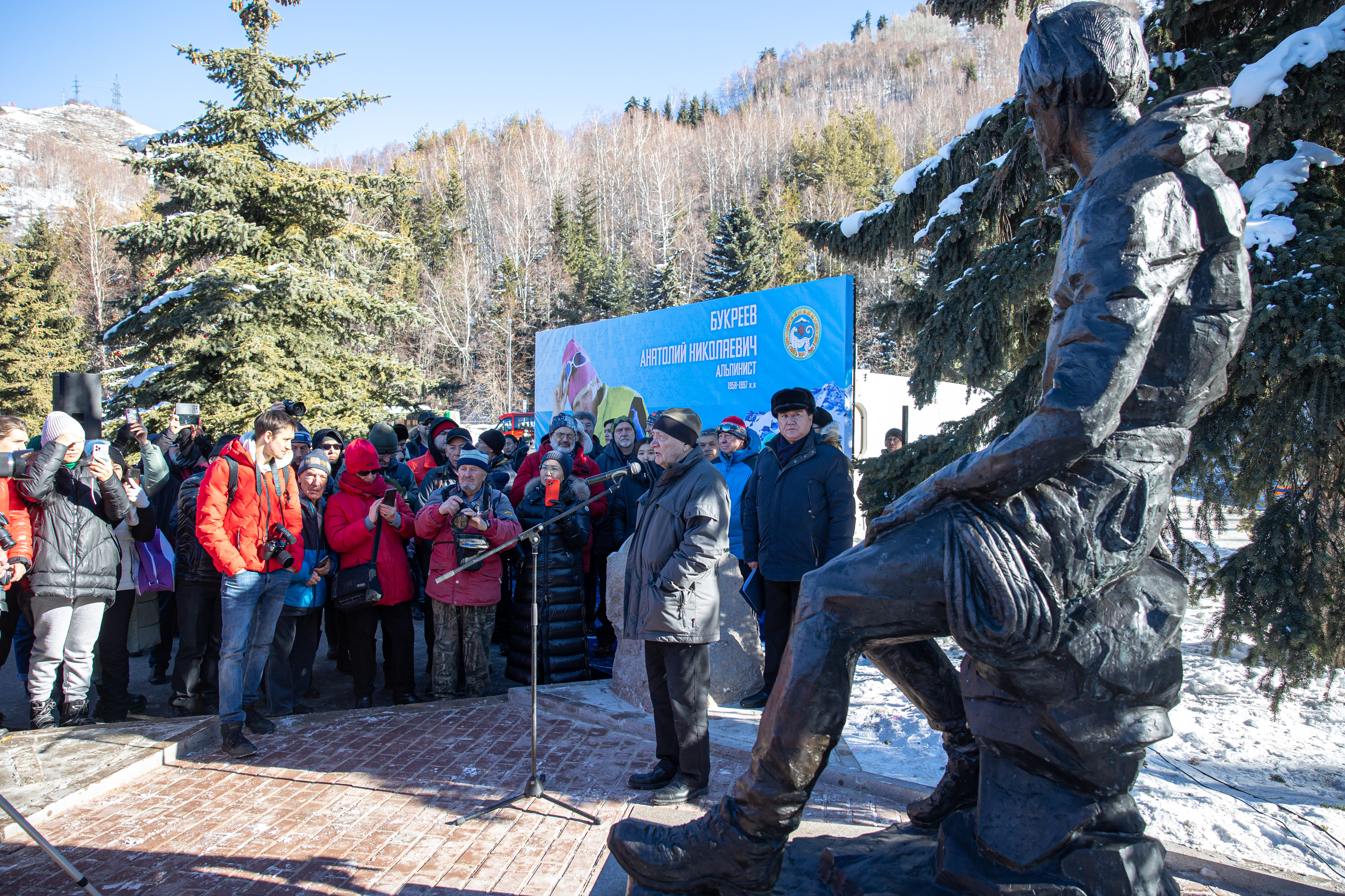 Анатолий Букреев алматылықтарды Медеу мұз айдынының алдында – әр жаңадан бастаушының шыңға қарай алғашқы жолы – бөген мен Горельник жанында қарсы алады. Бұл қалалықтар мен қала қонақтарының сүйікті орны.