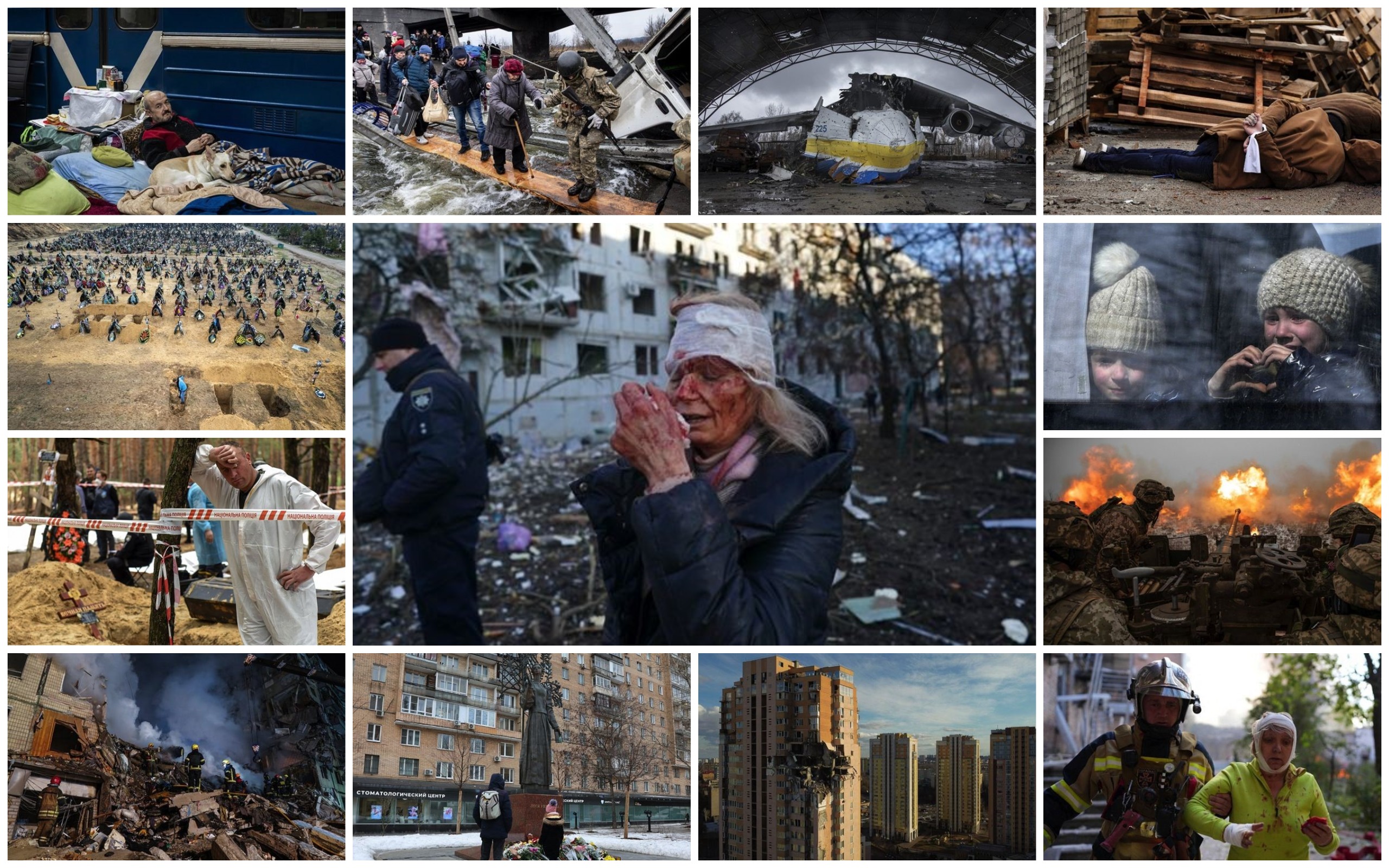 2022 жылғы 24 наурыз, Мариупольдегі эвакуация. Ресейлік әскердің қоршауында қалған Мариуполь тұрғындары ұзақ апталар бойы қаладан шыға алмады. Адамдар жертөлелерде жасырынды. Нақты саны белгісіз көп адам оққа ұшты. Оларды көршілері үйлердің ауласына жерледі.