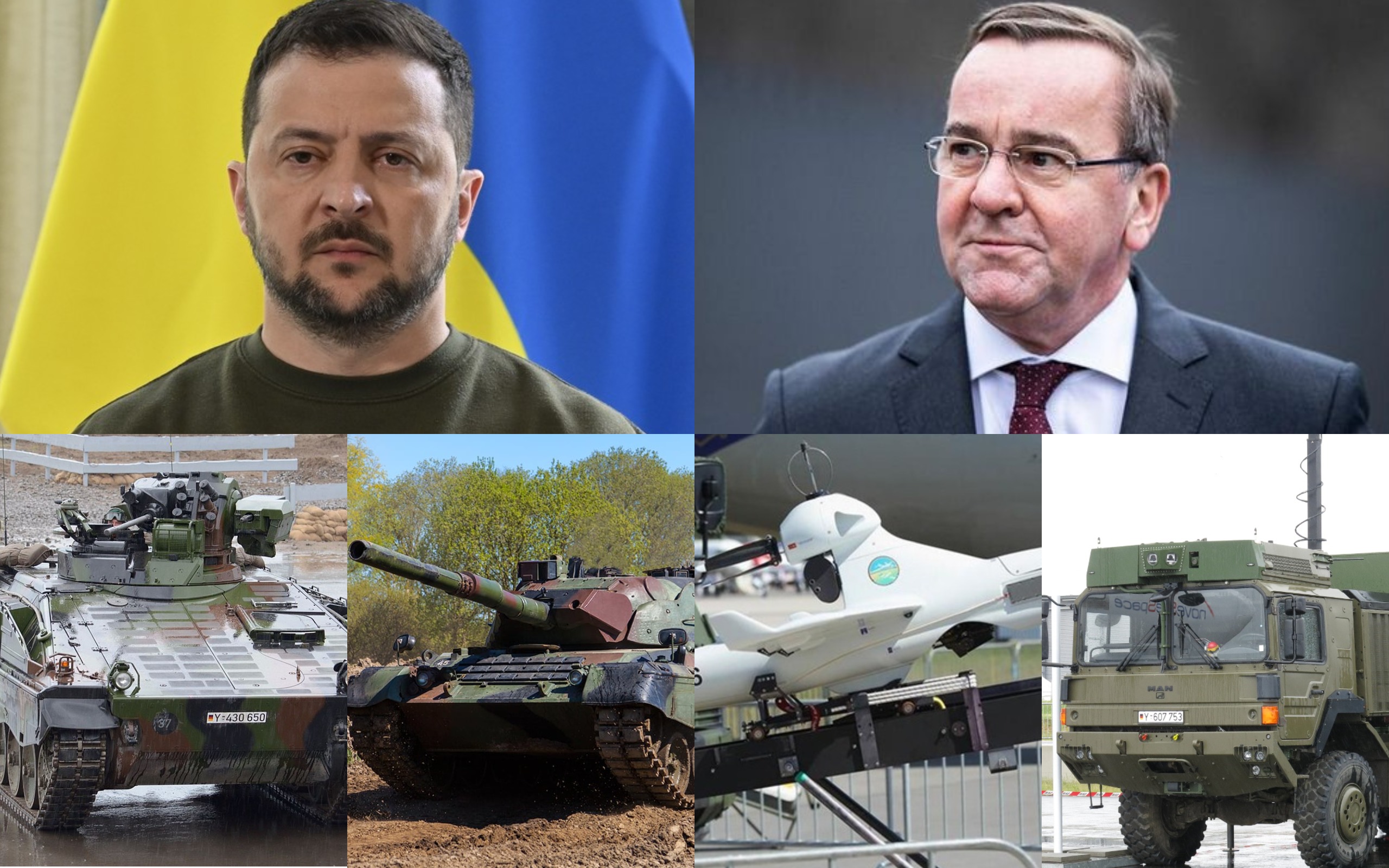 Оның ішінде: «Leopard 1» танктерінен 30 дана, «Marder» БМП-ларынан 20 дана, 18 дана доңғалақты гаубица, 4 дана «IRIS-T-SLM» ПВО кешені, 12 дана «IRIS -T-SLS» қондырғысы мен осыларға арналған зымырандар, 200 дана барлаушы дрон, 200 түрлі ұрыс көліктері және т.б техникалар бар.