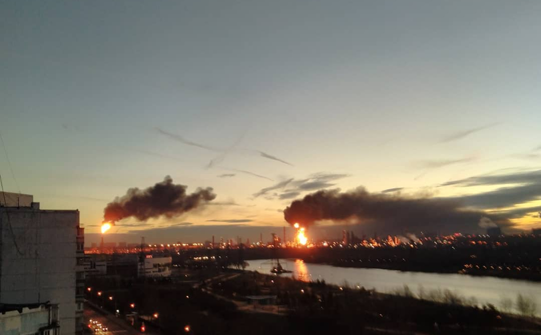 Газ қоймасына екі дрон соғылған. Бір газ толы қойма толық отқа оранса, екі қойма жартылай жанып кетті. О баста қоймадағы өрт техникалық ақау салдарынан болді деген ақпаратты таратты. Алайда Петербург тұрғындары газ қоймасы орналасқан Усть-Луга ауылына бет алған дрондардың видеосын жариялағаннан кейін, Ресей билігі шабуыл болғанын растады. Ресейдің қорғаныс министрлігі шабуылға қатысты мәлімдеме жасаған жоқ.