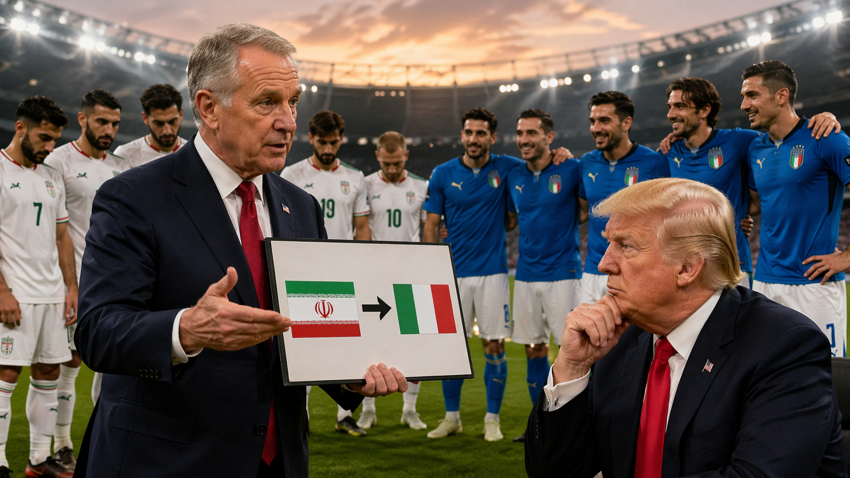 АҚШ-тың халықаралық әріптестік бойынша арнайы өкілі Паоло Замполли ФИФА басшысы Джанни Инфантино мен Трампқа осындай ұсыныс айтты. Паоло Замполли Италияның осыған дейін футболдан төрт мәрте әлем чемпионатында жеңіске жеткенін айтып, сайысқа қатысуға моральдық құқығы бар екенін жеткізген. Паоло футболды сөз ете отырып, АҚШ пен Италия арасындағы суық қатынасты жылытуға тырысуда дейді мамандар. Трамп пен Италия премьері Мелонидің арасындағы саяси салқындық күшеюде. Ал спорттағы әріптестік бұл геосаяси суықтықты жылытып, қатынасқа жылымық сыйлауы ықтимал. Трамп Италия премьерін тілдеп, Рим Папасын келеке еткеннен кейін, тараптардың арасы тіпті суып кетті.