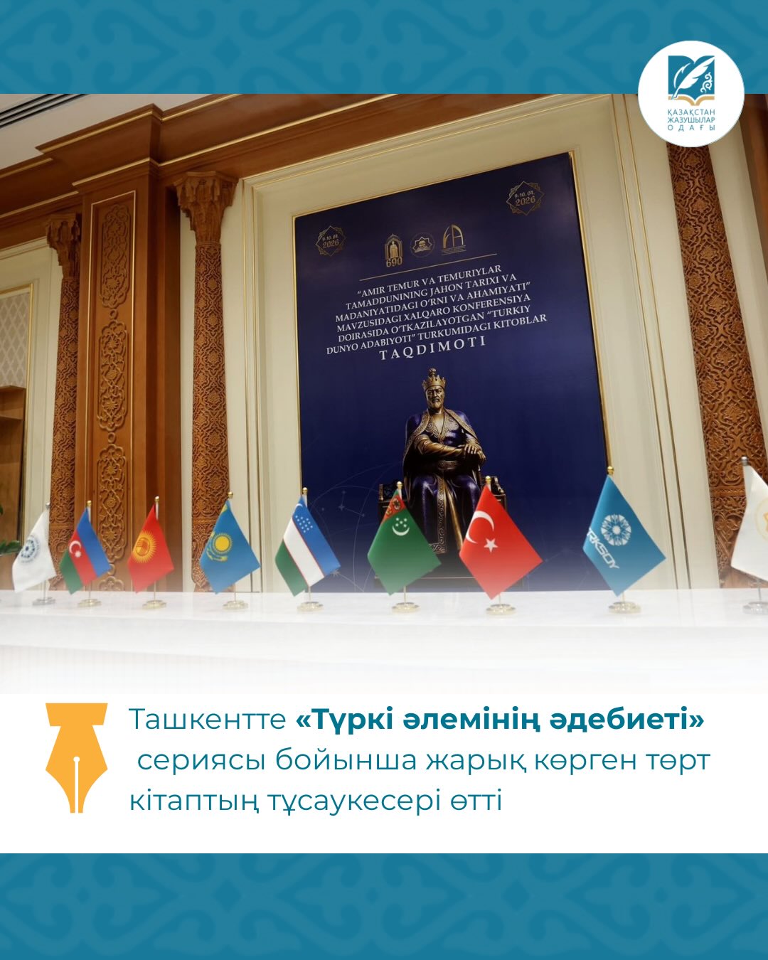 Бүгін Өзбекстандағы Ислам өркениеті орталығында «Әмір Темір мен темірліктер өркениетінің әлем тарихы мен мәдениетіндегі орны және маңызы» тақырыбындағы халықаралық ғылыми конференция аясында қазақ тілінде жарыққа шыққан «Түркі әлемінің әдебиеті» сериясындағы жаңа кітаптардың тұсаукесері өтті.